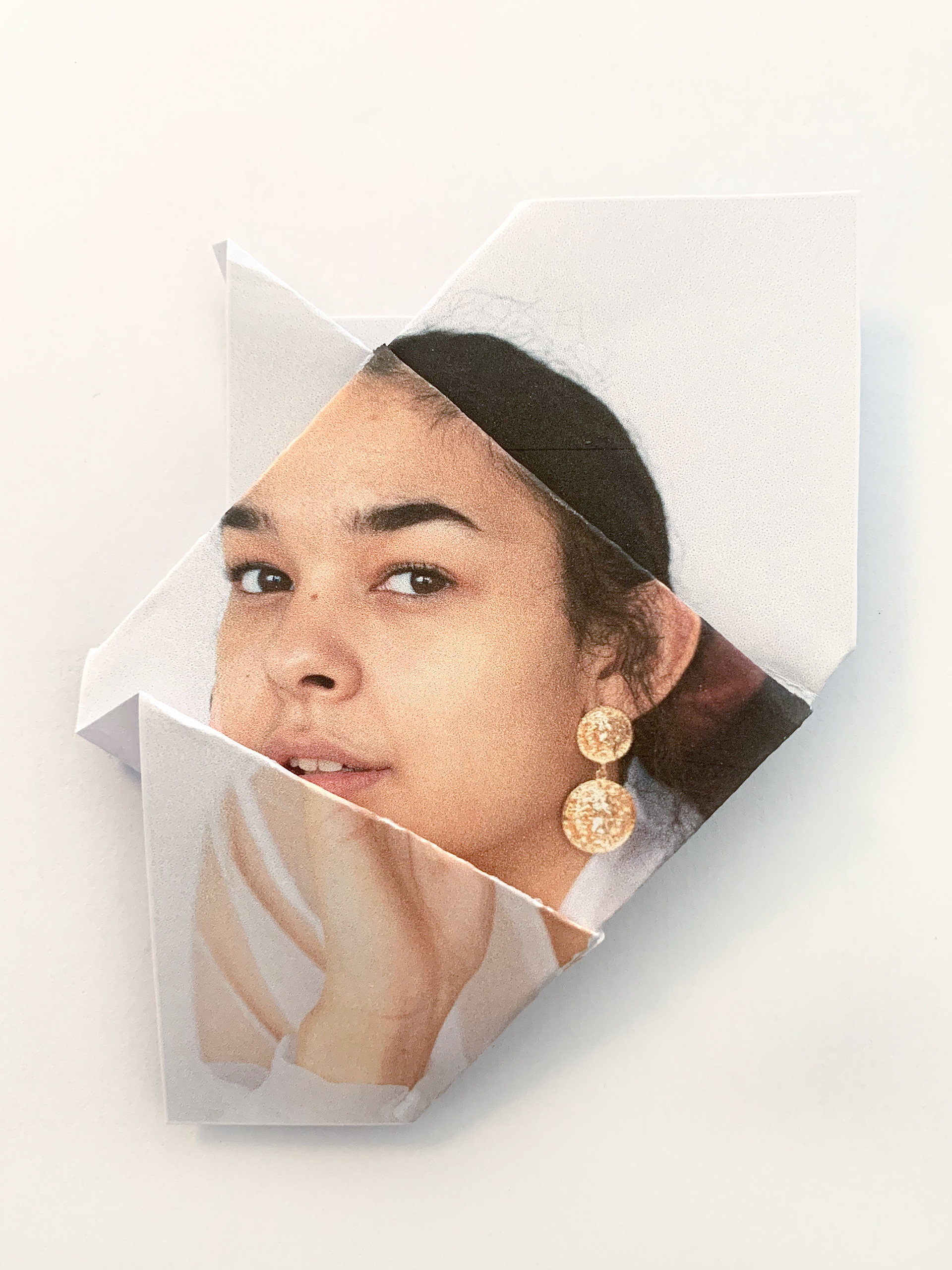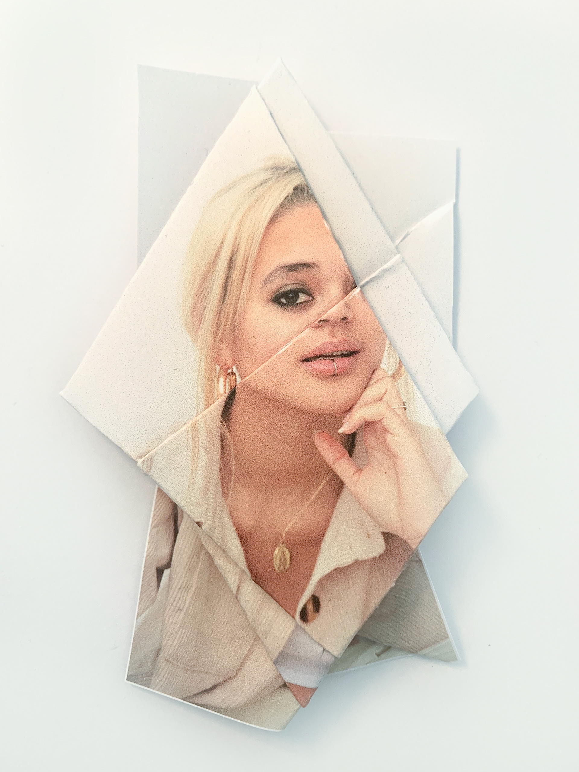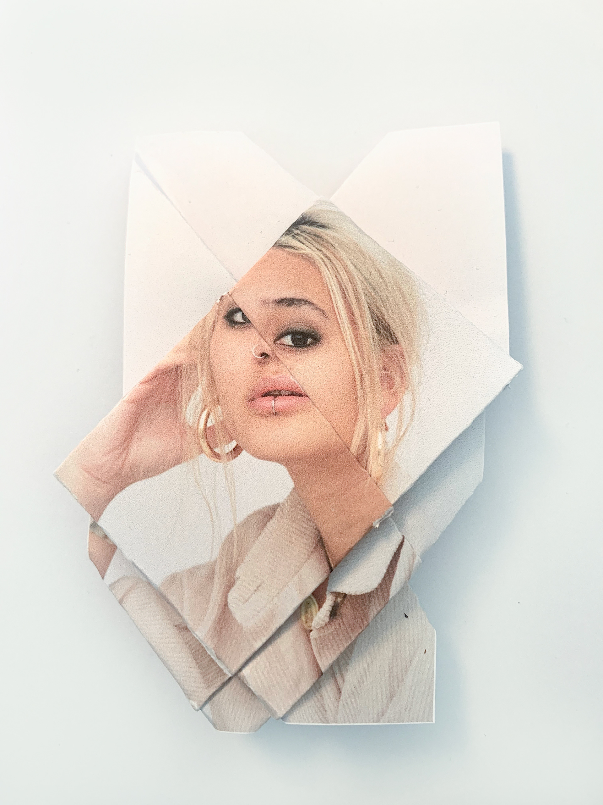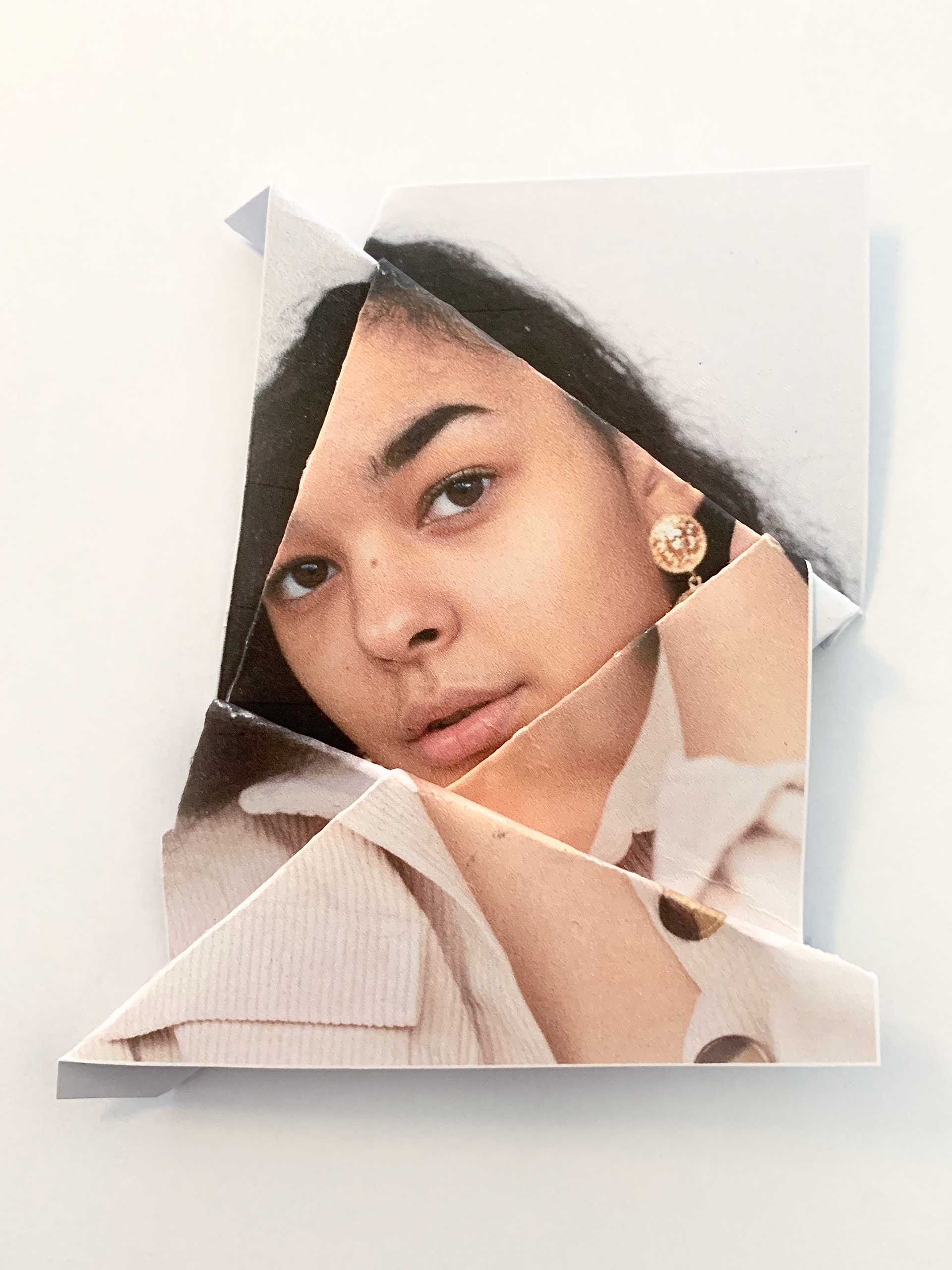 I really started to explore just how much I could distort the models' faces through the origami technique, and I felt that I was starting to create some pretty interesting images that were more in tune with the aim of my project.